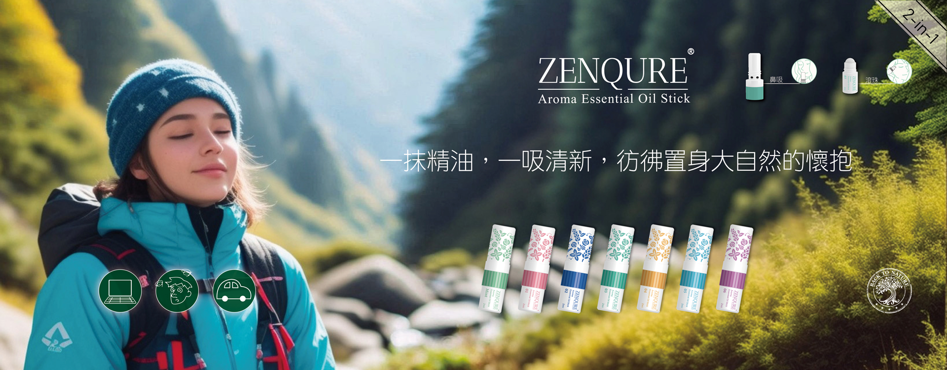 ZENQURE二合一滾珠精油棒,鼻吸提神、滾珠香氛雙效合一。六款特調香氣,輕巧時尚,獲《美麗佳人》專文刊登。點此了解都會女性的必備單品。