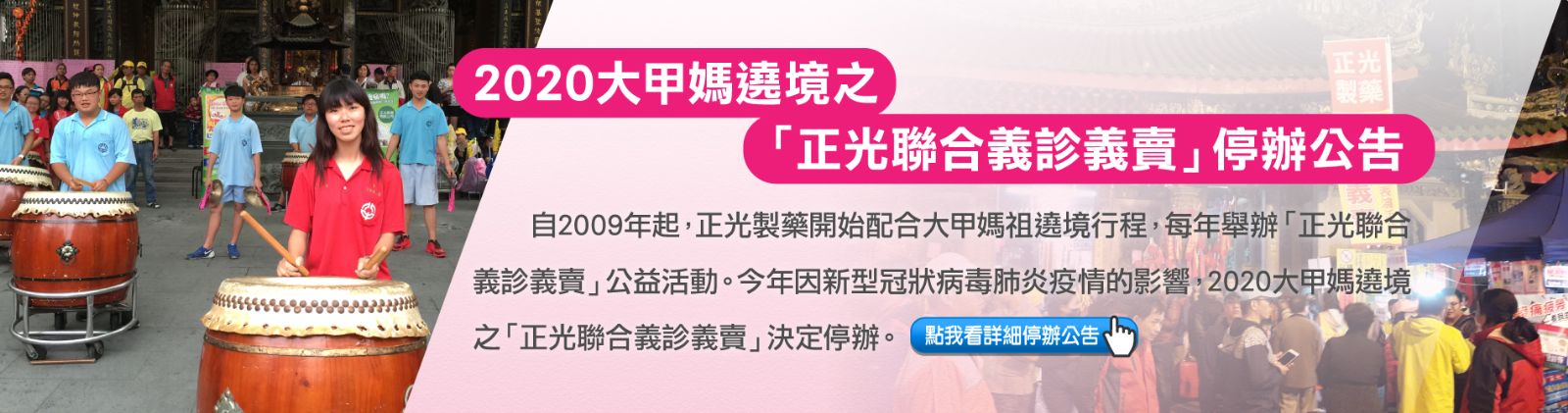 很遺憾在此宣布,2020 大甲媽遶境之「正光聯合義診義賣」決定停辦。
